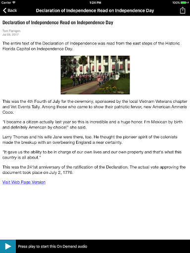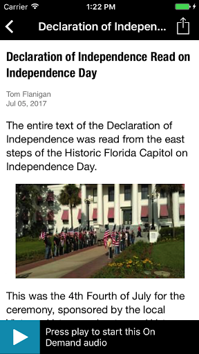 • The WFSU Public Radio App displays the web page associated with the program or program segment you are listening to On Demand so you can explore for more information.