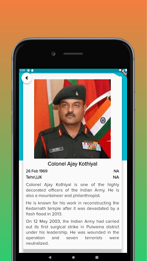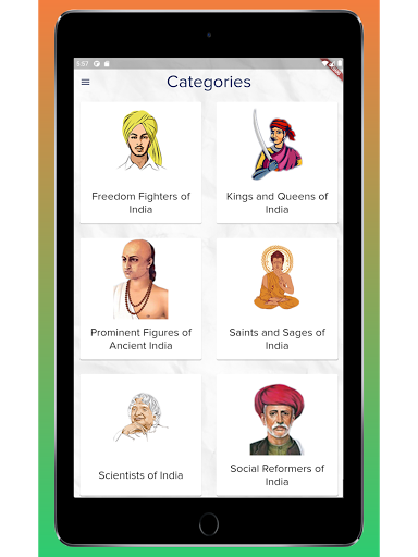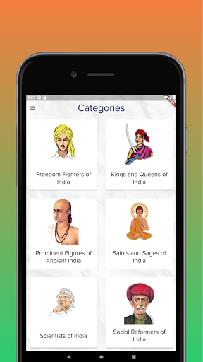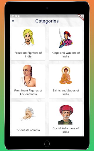 Once users launch the app, they can select any of the available categories. Currently the app supports 6 categories - Freedom Fighters, Social Reformers, Soldiers, Scientists, Prominent figures of Ancient India, Saints and Sages.