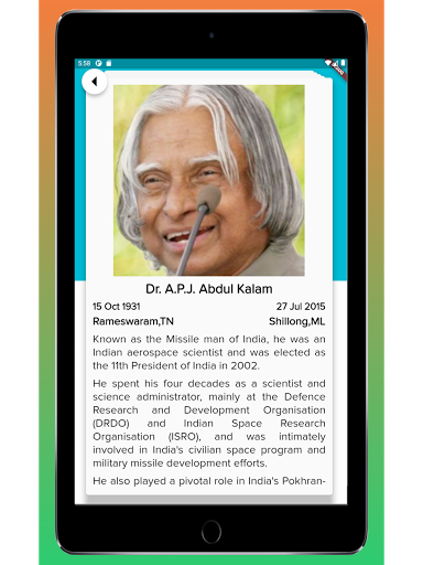 Learn India App is a simple yet powerful knowledge app on India. It is based on categories and cards. Each card contains interesting information on a person, place, event, monument etc. Users can keep swiping and to the next card, browsing through interesting and important information as they go along.