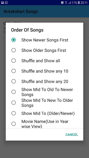There should be any option to see old songs first. Pls add that facility in your app. And inform us.