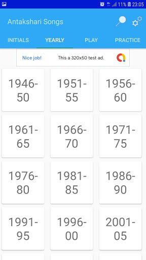 1. Antakshari, Year wise, Play , Practice screen, Guess movie names.