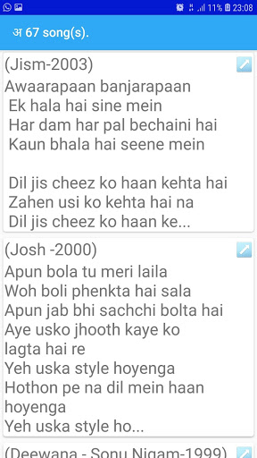 2. A database of around 1600 superhit bollywood songs with full lyrics.