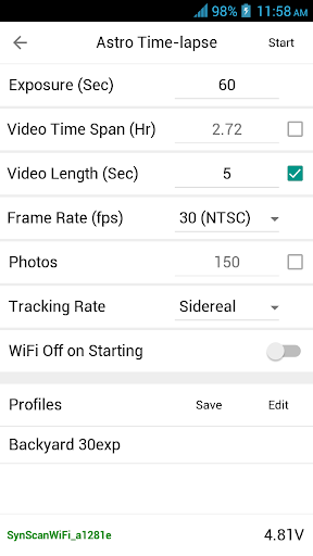 Use this app to program the camera mount for astrophotography and time-lapse photography. It can also help a Sky-watcher equatorial mount user to do polar alignment with the polar scope.