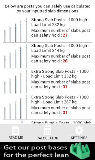Be assured your slabs are safely stored. The Calculation will tell you which Slab or Bundle Posts are suitable for your slabs.