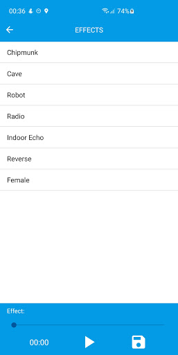 The voice changer supports storing voices in the device memory so that you can play the changed voice again later.