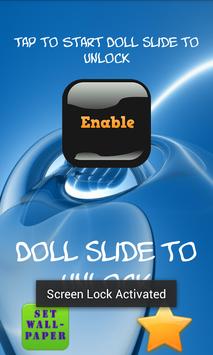 Doll Slide to Unlock is a Screen Lock of a Mobile for Android Users you can Select Different Types of Dolls from the Gallery of the Dolls you have to Make Enable the Screen Lock by Pressing the Large Green Button on the MainView that's it