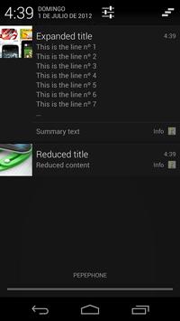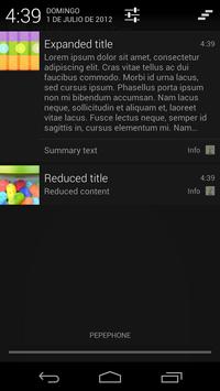 This application demonstrates the use and look of the new rich notifications introduced in Android 4.1 JellyBean.