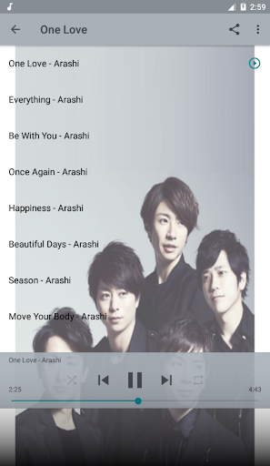 Arashi Best of Music is a fun application to help you listen to offline music without the Internet. In addition, Arashi Best of Music is also a collection of Arashi music albums. The high quality MP3 songs performed by Arashi are selected by us and put into Arashi Best of Music application. This is the best and most complete Offline music app for Arashi's lifetime albums we've compiled.