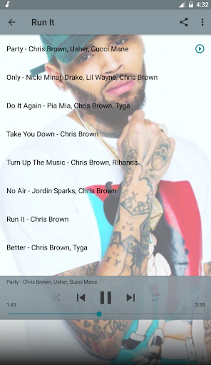Chris Brown Top Music Free is a fun application to help you listen to offline music without the Internet. In addition, Chris Brown Top Music Free is also a collection of Chris Brown music albums. The high quality MP3 songs performed by Chris Brown are selected by us and put into Chris Brown Top Music Free application. This is the best and most complete Offline music app for Chris Brown's lifetime albums we've compiled.