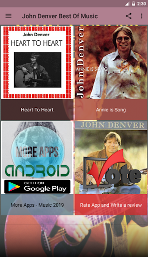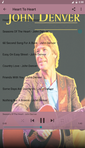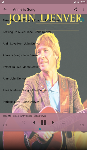 John Denver Best of Music is a fun application to help you listen to offline music without the Internet. In addition, John Denver Best of Music is also a collection of John Denver music albums. The high quality MP3 songs performed by John Denver are selected by us and put into John Denver Best of Music application. This is the best and most complete Offline music app for John Denver's lifetime albums we've compiled.