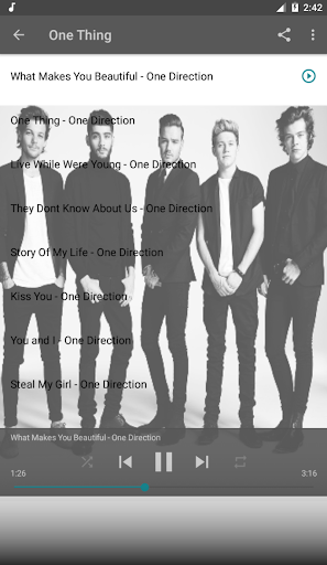 One Direction Best of Music is a fun application to help you listen to offline music without the Internet. In addition, One Direction Best of Music is also a collection of One Direction music albums. The high quality MP3 songs performed by One Direction are selected by us and put into One Direction Best of Music application. This is the best and most complete Offline music app for One Direction's lifetime albums we've compiled.