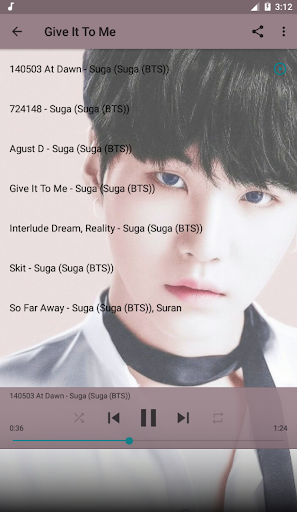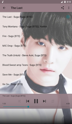 Suga BTS Top Music Hot is a fun application to help you listen to offline music without the Internet. In addition, Suga BTS Top Music Hot is also a collection of Suga BTS music albums. The high quality MP3 songs performed by Suga BTS are selected by us and put into Suga BTS Top Music Hot application. This is the best and most complete Offline music app for Suga BTS's lifetime albums we've compiled.