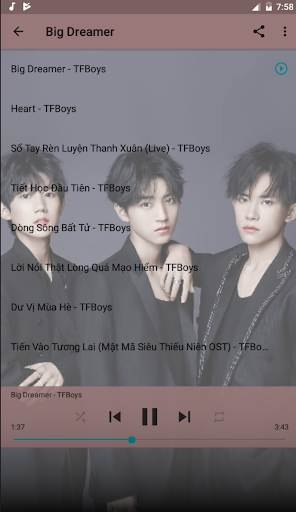 TFBOYS Album of Music is a completely FREE online music application. The purpose of this TFBOYS Album of Music application is to provide users with the best features and the easiest to use. Our application aggregates the most popular songs online, ... so you can search for the songs you like to listen to.