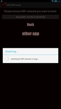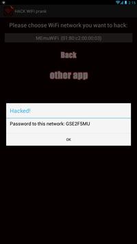 Hacker All Wifi Password Prank scans for available networks and displays security information about them. WiFi hacker highligts routers with potentially weak protection. The hacking begins when you tap on a network in range. A scary looking black box appears and pretends to break the networks protection.