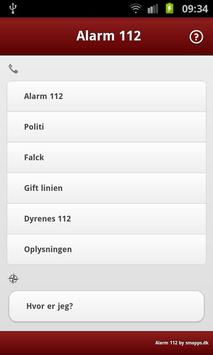 Denne app indeholder genveje til hurtig kommunikation til Alarmcentral, Politi, Oplysningen og Falck.