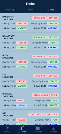 This is a Virtual Trading Application which has all the features to trade. This application is used for exchanging views on markets for individual students for training purpose only. No real money involved.
