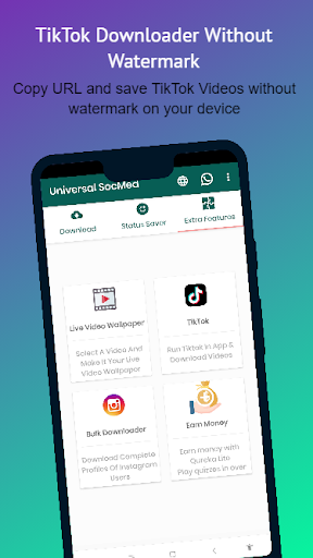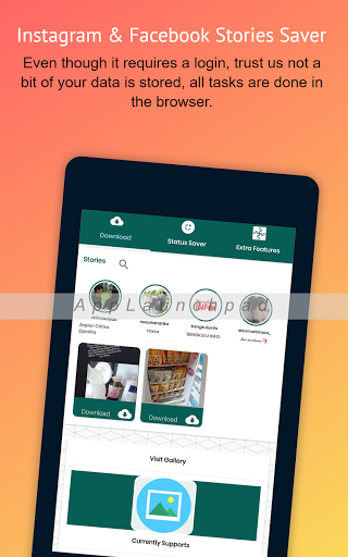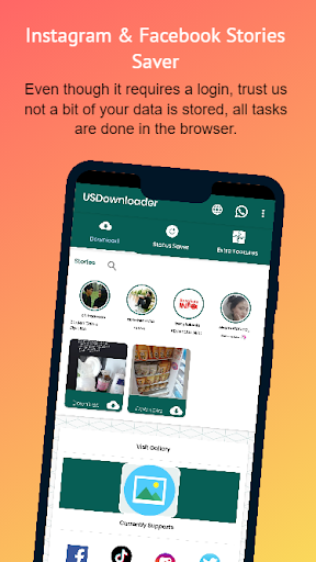 There are many social networks supported by our app, from Tik Tok, Instagram, WhatsApp, Facebook etc. No watermark in Phone Gallery and view it Offline Anytime. We never save your login details, so you don't have to worry about providing your login details on the browser page or you can copy the direct URL without having to login to your favorite social network.