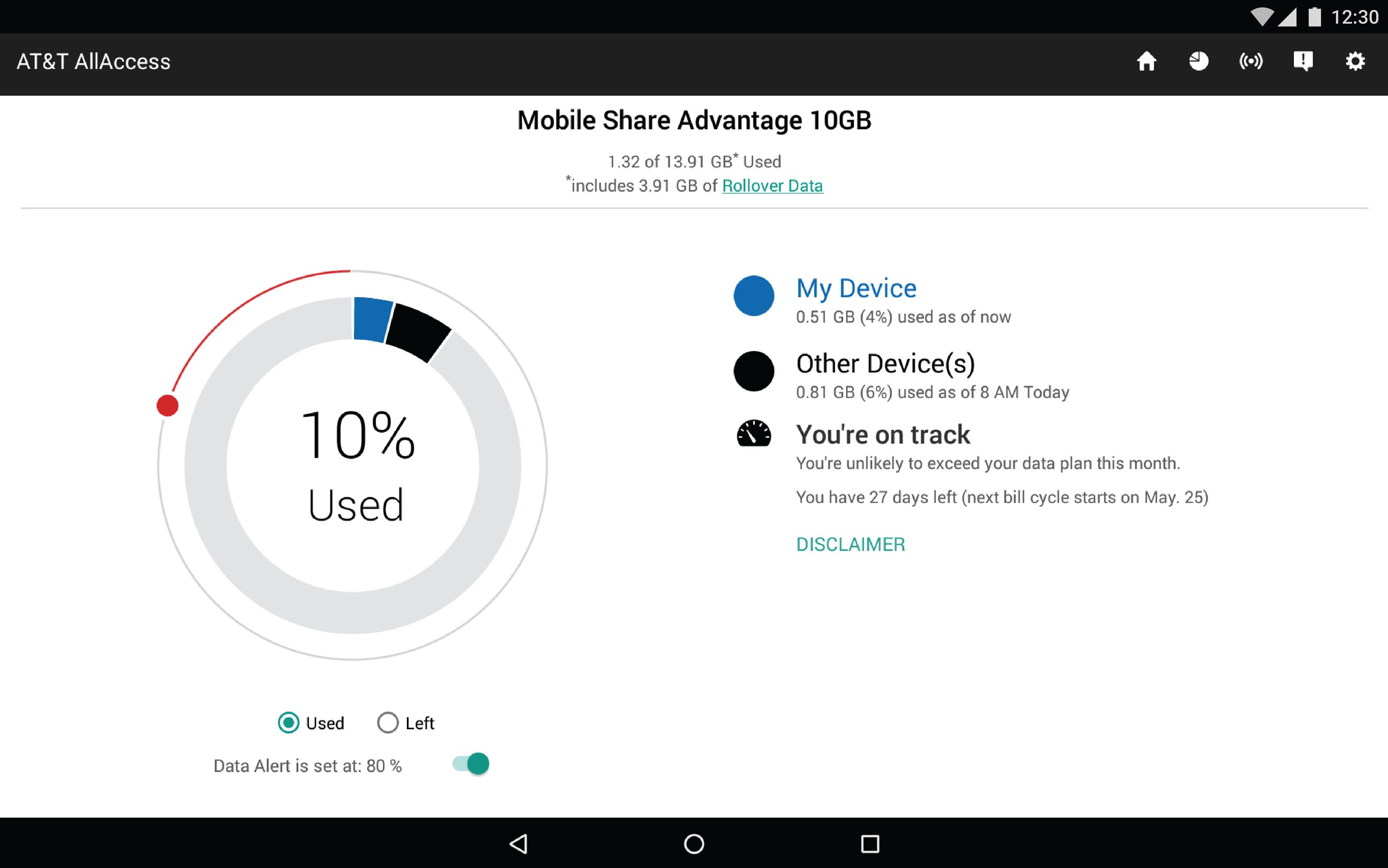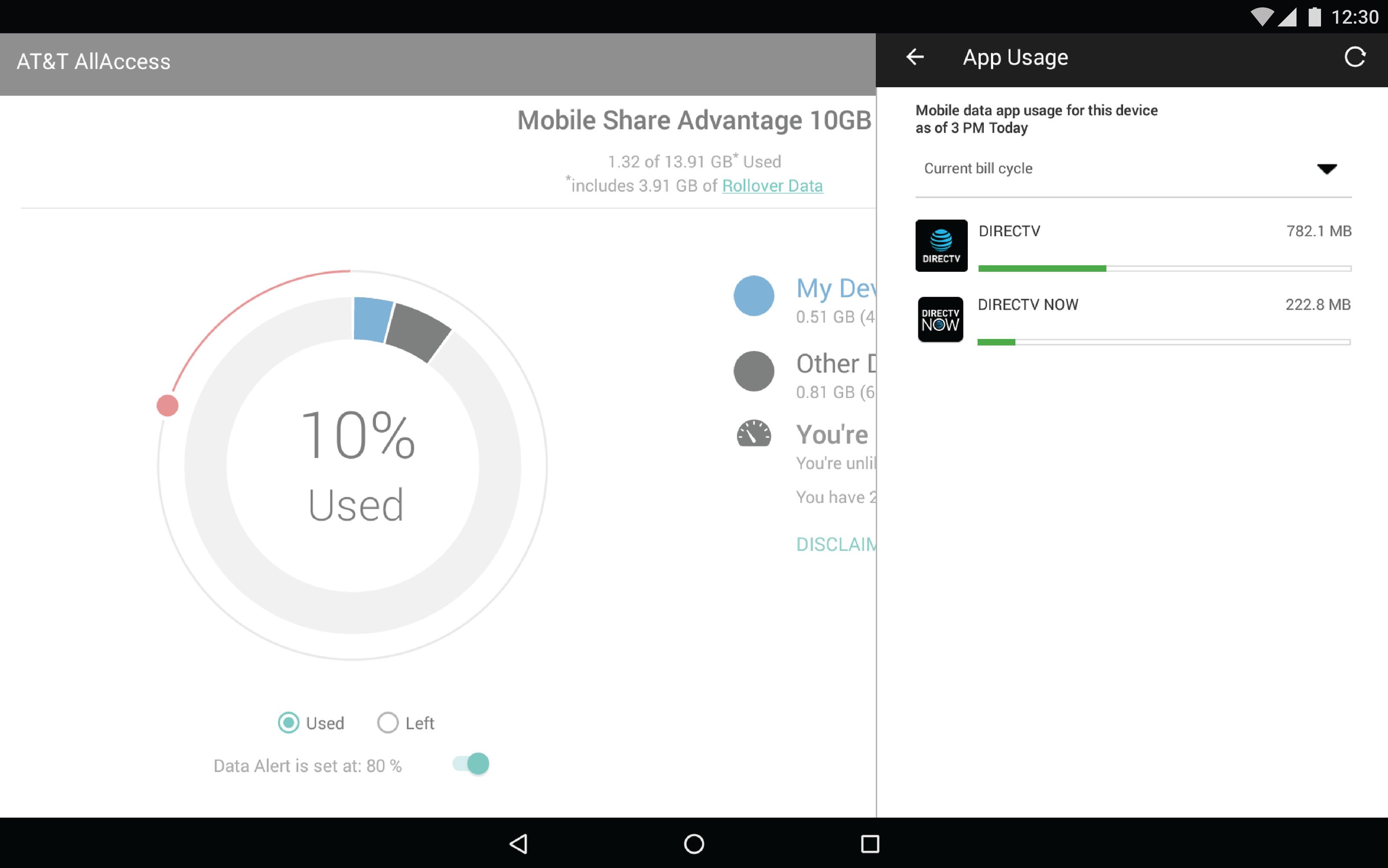 AT&T AllAccess helps you monitor your data usage and app usage. Set alerts and get notifications when approaching your data limit.