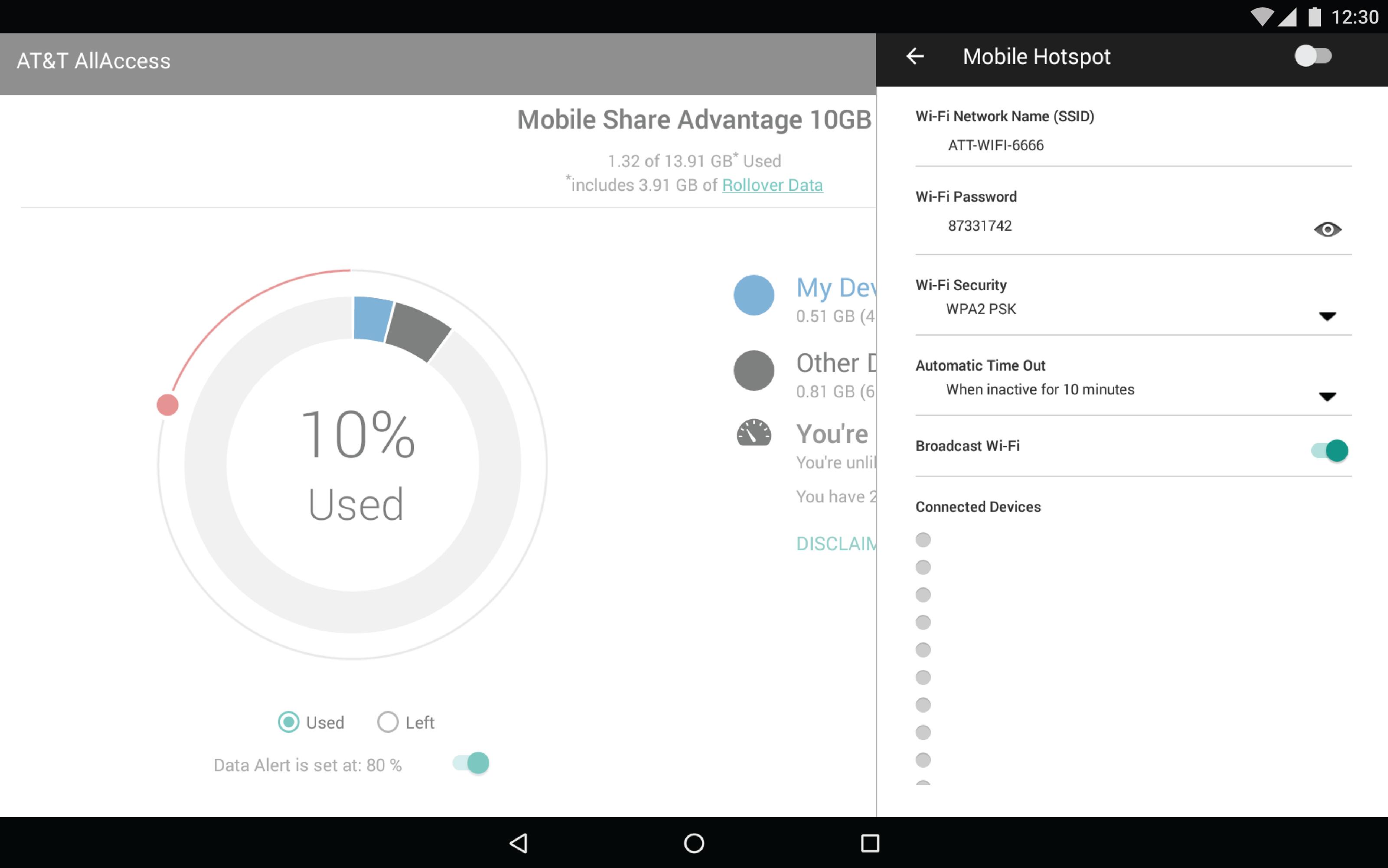 • Use the widgets to quickly see how much data against your AT&T Data Plan has been used