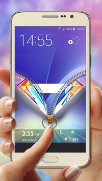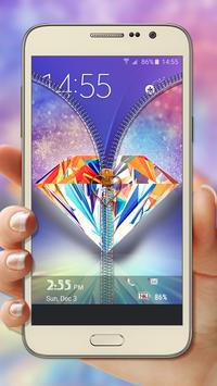 Drag the zipper to unlock your device. Touch and hold the Zipper down until the Diamond zipper is unlocked.