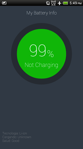 Battery Info muestra la información de la batería y estadísticas tales como el nivel de la batería , el voltaje, la temperatura y la salud en una aplicación.