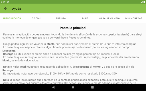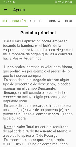 โปรแกรมนี้พยายามช่วยเหลือปัญหานั้น มันถูกออกแบบมาเพื่อให้ผู้ใช้แนะนำราคาในสกุลเงินต่างประเทศและโปรแกรมแสดงจำนวนเงินที่เทียบเท่าของเงินเปโซอาร์เจนตินาสำหรับวิธีการชำระเงินต่าง ๆ
