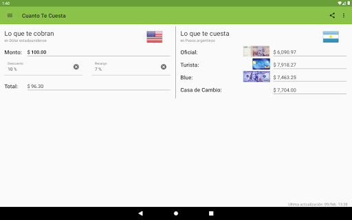 * * ออกแบบเพื่อแปลงสกุลเงินที่แตกต่างกันมากกว่า 130 สกุลเป็นเงินเปโซของอาร์เจนตินา