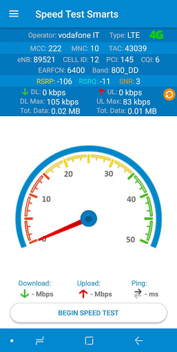 Speed Test Smarts is the application you been looking for checking internet speed and signal quality. A final popup reports summary and technical values about your speedtest, mobile network serving and neighbor cells information, signal levels. It’s a tool can be used by professionals to get better insight on the network or by radio enthusiasts to learn more about wireless networks. Speed Test Smarts collects anonymous information about the quality of user experience. It’s collects technical data from the phone (for instance network information and throughput) to help understand how they can influence the service perception. No sensitive private information will be collected by Speed Test Smarts. No in-app advertisements are included.