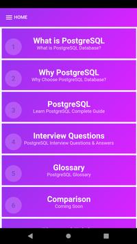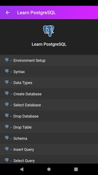 Learn PostgreSQL Tutorial | PostgreSQL Database Tutorial | PostgreSQL Client. PostgreSQL is an open source relational database management system (DBMS) developed by a worldwide team of volunteers. PostgreSQL is not controlled by any corporation or other private entity and the source code is available free of charge. PostgreSQL is a powerful, open source object-relational database system. It has more than 15 years of active development and a proven architecture that has earned it a strong reputation for reliability, data integrity, and correctness. PostgreSQL runs on all major operating systems, including Linux, UNIX, and Windows. This PostgreSQL tutorial App will give you quick start with PostgreSQL and make you comfortable with PostgreSQL Database programming.