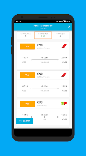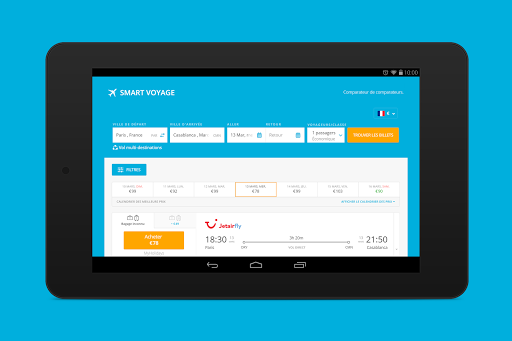 Le concept de notre application "Smart Voyage" est simple : c'est un comparateur de comparateurs. Cela permet de vous afficher les billets les moins chers possible !