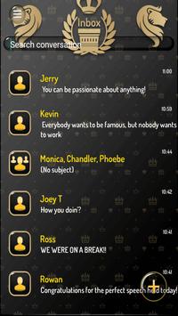 Make your gadget look luxurious than ever and customize it with Royal Art SMS. If you want to feel like a superstar when you are texting with your friends, download the new Royal Art SMS theme and you will look glamorous and ready to step on the red carpet. Black is a symbol of luxury and success so if you want to attract all of these things wear this theme every day. When you feel good you are more confident and confidence leads to success. Don't settle for anything less than perfect and choose the amazing Royal Art SMS. Your smartphone it's your best accessory and now you can personalize how you want. ENJOY!