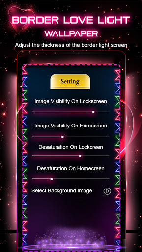 Border Light Live Wallpaper - LED Color Edge the application that has an animated live wallpaper theme that allows you to set Edge lighting rounded corner wallpaper live on your computer. Application does not eat more of the batteries while you are on your mobile screen as a live wallpaper. It brings soft, lovely, round edges of live light to your screen. The app has a wonderful user interface to use and makes your mobile screen totally adorable with appealing lighting. It allows the customer to alter the color of their wishes. You have the choice to alter your mobile wallpaper live view and also set your own background picture.