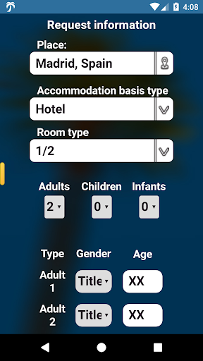 The second option is to make a request for a room to a specific place for a specific period of time. Then, all your cooperants from that place will be informed for your request. If they can serve you, they will make an offer to your request.