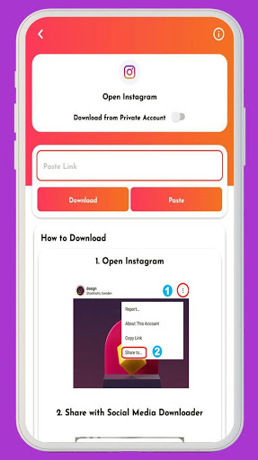 Or click on the 3 dots, copy the link of the content, switch to our application and paste the link and start the download