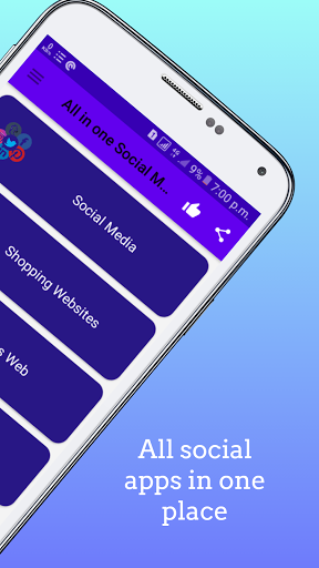 All in one social media app, you can easily access - all social media apps, social networking apps, all search engine apps, online shopping apps, online all travel booking app, video maker, all email providers, messenger app, news app online education app, sports news app, job search app, health apps in one place.
