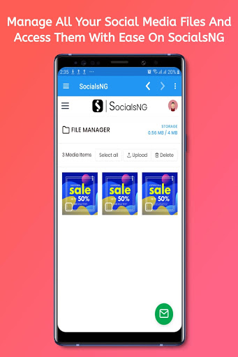 - Manage all your social media files and access them whenever you need to with SocialsNG files manager.