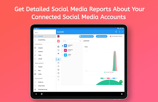 - Get detailed reports about your social media post activities.