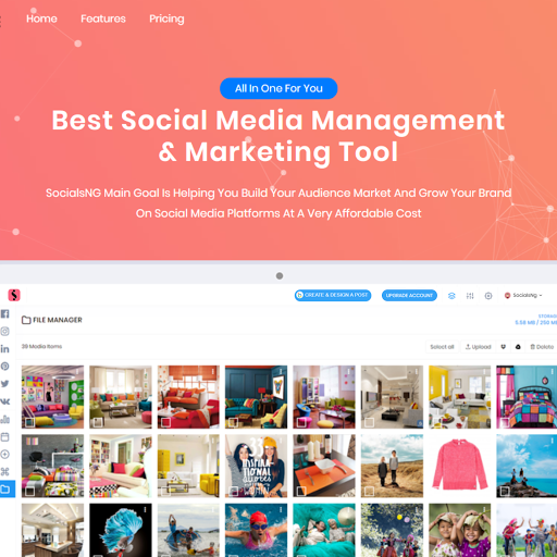 SocialsNG is a social media management platform with the main goal of helping you build your audience, market and grow your brand on social media platforms, i.e, Facebook, Instagram, Twitter, LinkedIn and so many more.