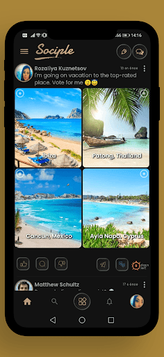 Sociple is a global platform for public self-expression that allows you to create and share your considerations, images, and videos. Besides, you can create text voting and image voting, or you can use both simultaneously to see people's reactions worldwide. Every vote can resonate worldwide and make a difference with Sociple!