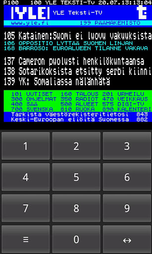Sofia Digitalin Teksti-TV:tä käytettäessä sivujen selailu on nopeaa ja helppoa. Sivujen tiedostokoko on optimoitu sovellusta varten mahdollisimman pieneksi, esimerkiksi YLEn koko teksti-TV-sivuston lataaminen vastaa tiedonsiirtomäärässä normaalin www-uutispalvelun etusivun lataamista! Ulkomailla käytettäessä Teksti-TV-sovellus onkin yksi edullisimmasta tavoista lukea kotimaan uutisia.