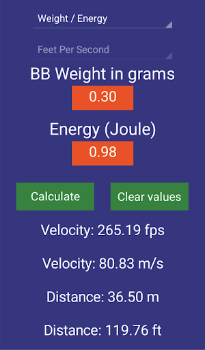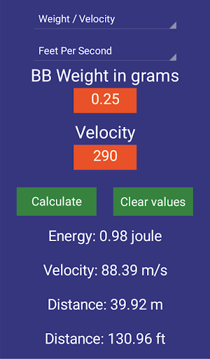 Need to know how BB weight changes impact energy in Joules? Download Soft Air Joule: use is very easy, just enter BB weight (grams) and velocity (m/s or fps) and you will get a sharp answer. As you know, the maximum power limit for an AirSoft BB gun is 1 Joule.