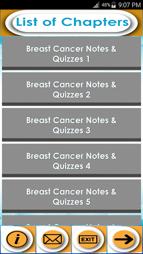 This app is a combination of sets, containing practice questions, study cards, terms & concepts for self learning & exam preparation on the topic of Breast Cancer.
