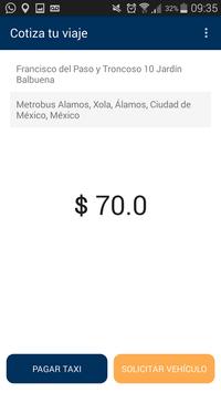 Antes de solicitar el servicio podrá realizar una cotización del viaje y saber cuanto pagará. La aplicación realiza el calculo con base en las tarifas de taxi de sitio.