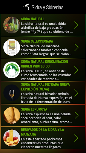 Mediante un sencillo funcionamiento podemos acceder a información acerca de los tipos de sidra y derivados de la manzana, productores de sidra asturiana y sus productos asociados.