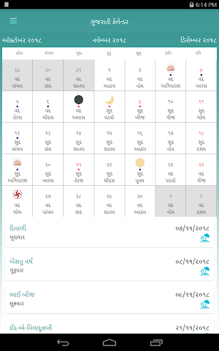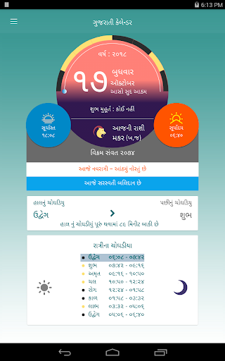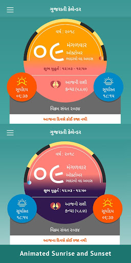 Gujarati Calendar is helpful app with various festival data in traditional manner, so user can know what Rashi (Zodiac) today is , what Rashi Character today is , what festival today is , What is todays's sunrise and sunset time , User can also know upcoming tithi's like Bij ,Aatham, Agyaras, Poonam , Amas , etc by setting notification for them