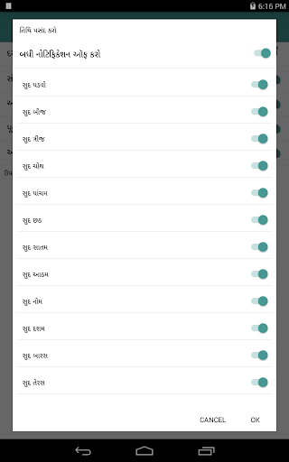 - Get Notification of upcoming tithi's like Nom, Agyaras, Poonam, Aamas, etc, you can also set timing of that notification