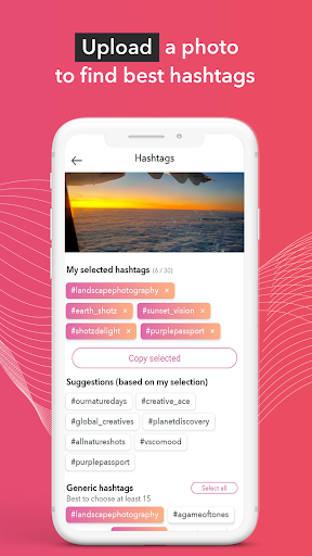 ✔ Upload a photo to get hashtags proposed. All hashtags will be generated automatically and specifically for your photo.