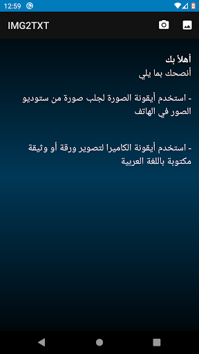 IMG2TXT app uses the Optical Character Recognition ( OCR ) technology to identify English and Arabic letters and words without internet access. It uses an AI Model to work offline.