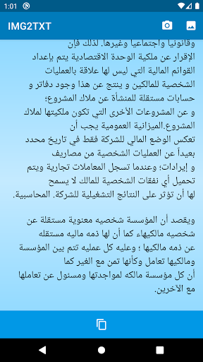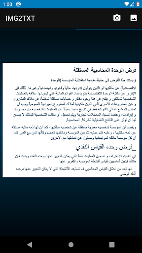 IMG2TXT is an Android application to help you extract English and Arabic text written on images of paper. This app can identify standard typed characters of English and Arabic language, so it can not identify hand-written text.