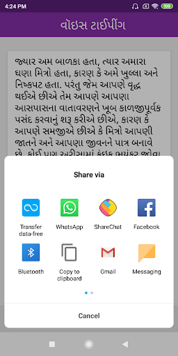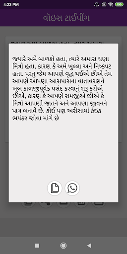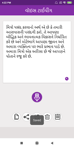 You can give as much large voice input and you can store all the voice text in separate lists. Gujarati Voice to text converter- Audio to Text converter is a simple app and user-friendly interface. The text will appears after you done speaking text and it is a Voice typing in all languages. Once you get rid of voice to text converter app, you can use the speech to text app and send quickly long texts and articles in any social media and all messaging applications in your device. Gujarati voice typing- Audio to Text converter is a Voice typing in all languages.